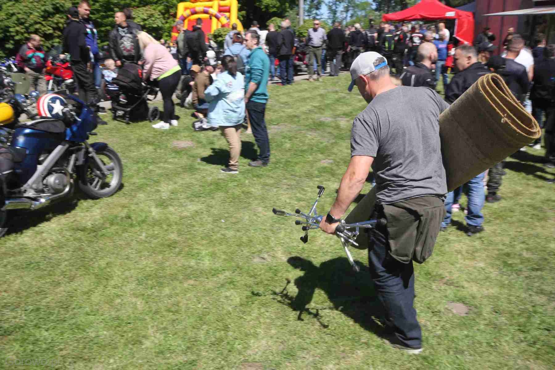 Weterani krośnieńskich motomajówek po przybyciu na miejsce natychmiast kierują się do stoiska prowadzonego przez Barbarę z rodziną, aby zaopatrzyć się w metalową, pięknie zaprojektowaną, okolicznościową przypinkę i wykupić abonament na posiłek z kuchni polowej. Taki rytuał.